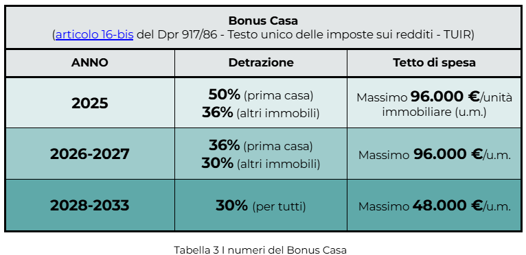 col nuovo art. 16-ter TUIR, a partire dall’anno di imposta 2025 viene stabilito un tetto basato sul reddito ad alcune detrazioni IRPEF, come i bonus edilizi: fino a 14.000 €/anno per redditi tra 75.000 e 100.000 €; fino a 8.000 €/anno per redditi > 100.000 €. Il tetto massimo effettivamente fruibile dipende in funzione del numero di figli a carico